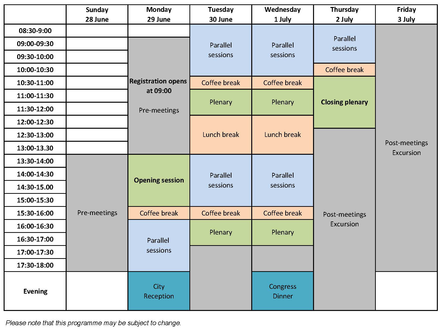 N.B : Ce programme peut être sujet à des changements.
