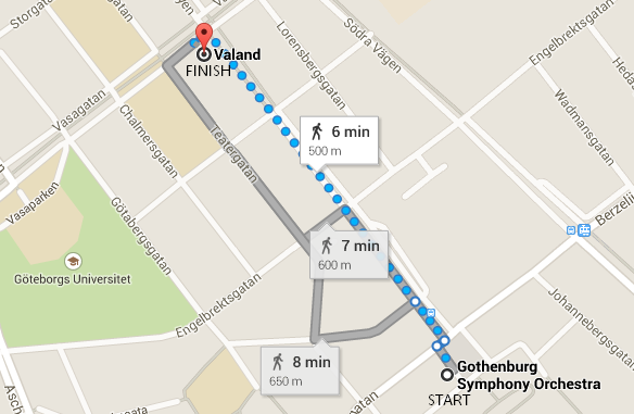To get to Valand after the last presentation ending approximately 18.00 you can take a walk down the Avenue, it is less than 10 minutes to get to Valand. Please refer to below map: